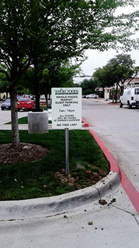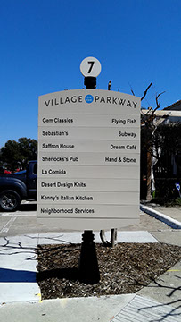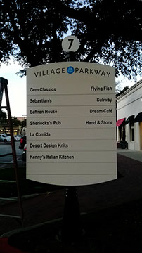 Directionals are made using aluminum backings and adhesive vinyl to ensure that your sign will be long lasting and retain a high quality look for many years. We make sure that the designs are done to city code and fit any area you need them to go. Everything is designed and built in shop and then taken on site to install.